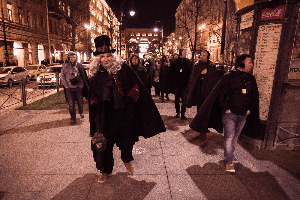 Облачившись в мантии и надев аудиогид со студийным звуковым сопровождением, Вы отправитесь в путь. Голоса профессиональных актеров будут сопровождать Вас на прогулке по улицам Северной столицы России. Заботливые спутники Фонарщика будут рядом с Вами по всему маршруту.
