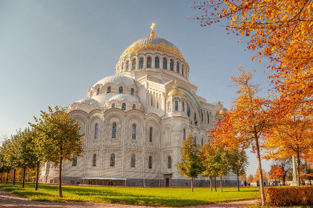 Мы увидим сразу две жемчужины Петербурга: парадную резиденцию Петра I — Петергоф, с его великолепными парками и фонтанами, а также город-крепость — Кронштадт, с его известнейшим Морским собором и боевыми кораблями на рейде.