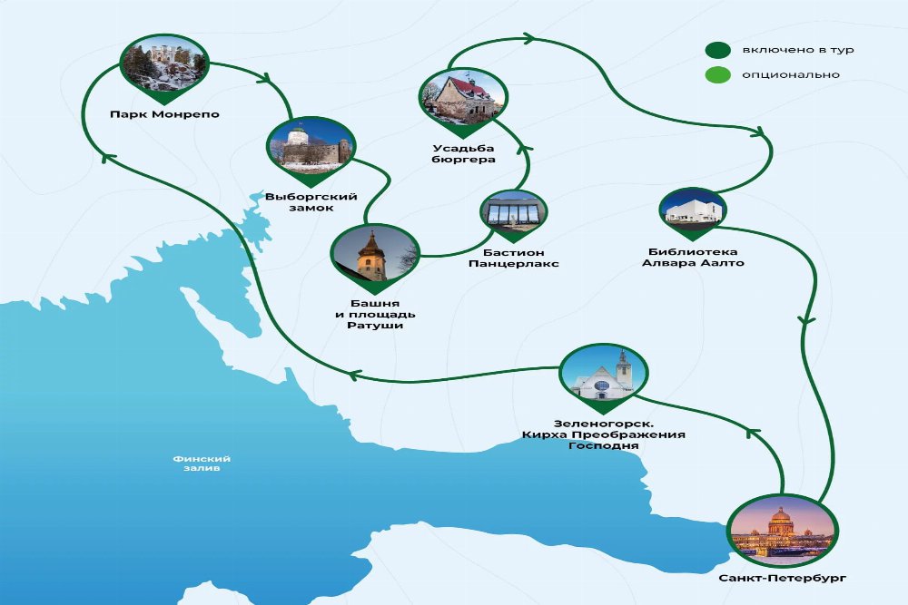 Наши экскурсоводы проведут вас по древним дорожкам Старого города к Выборгскому замку, а после вы отправитесь на прогулку по парку Монрепо и насладитесь его великолепными пейзажами.