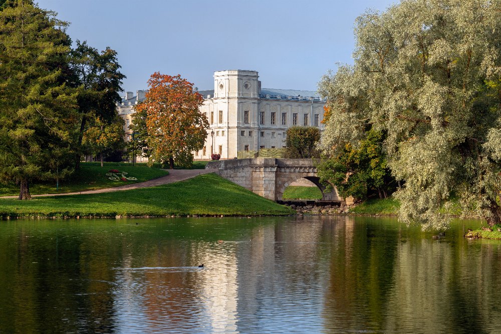 Пригородный Эрмитаж Гатчинский дворец не похож ни на одну императорскую резиденцию. Облицованный природным камнем, окруженный рвом, с его башнями и подземным ходом, он напоминает средневековый замок. И граф Орлов, которому это имение подарила Екатерина II, действительно строил замок, только охотничий. Позже Гатчина досталась Павлу I, и «русский Гамлет» наполнил дворец антиками, картинами, французской мебелью и гобеленами. Николай I отреставрировал парадные покои, оформил личные комнаты по моде своего времени. Александр II перенес в Гатчину императорскую охоту, будучи страстным охотником. А Александр III практически жил здесь круглый год: он выбрал уютные небольшие комнаты с невысокими потолками. Гатчина была домом русских царей, ее назвали пригородным Эрмитажем. Вы увидите: парадные покои, личные комнаты Николая I, парк с его павильонами и, если хватит сил, Приорат.