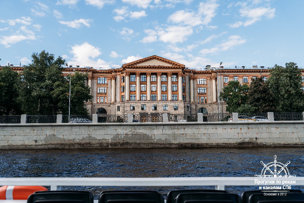 На комфортабельном однопалубном теплоходе — по живописной акватории Петроградской стороны.