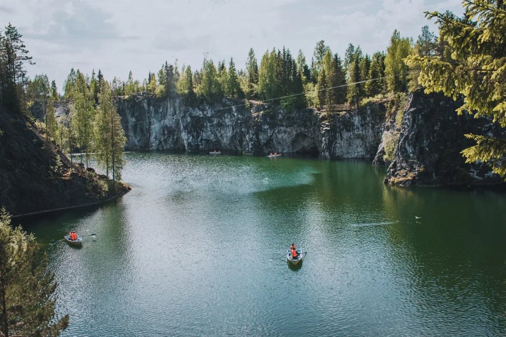 • Попадете в знаменитый горный парк «Рускеала» и сможете увидеть его главную достопримечательность — Мраморный каньон.
