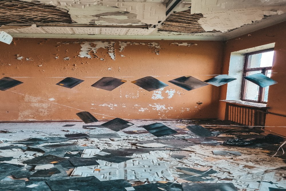 Следующей локацией будет заброшенная музыкальная школа. Внутри вы увидите много музыкальных инструментов, разбросанные ноты, личные дела с фотографиями, актовый зал.